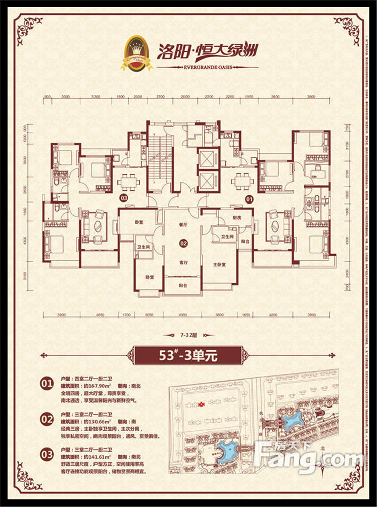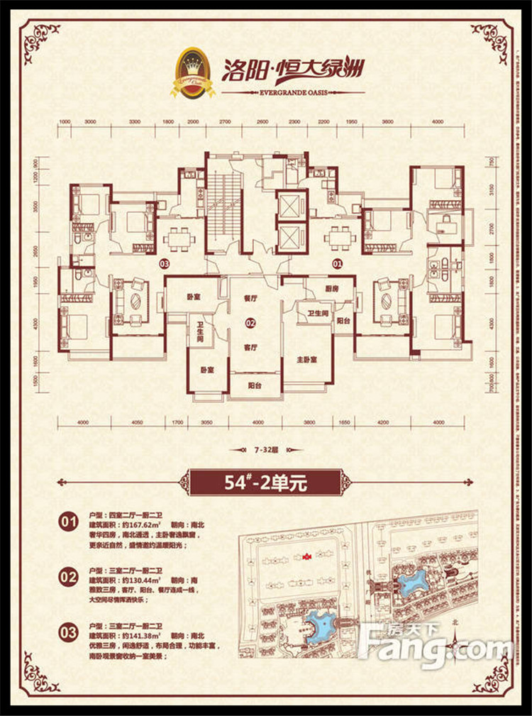恒大綠洲項(xiàng)目位于洛陽市瀍河區(qū)洛陽市東出口,洛河以北、中州東路兩側(cè)、二廣高速以西,項(xiàng)目獨(dú)享洛河北岸3500多米河岸線,且處于洛陽市城市東西中軸線中州路東段,臨中州路街面長(zhǎng)2000余米,有多路公交車直達(dá)。恒大綠洲全部項(xiàng)目占地面積約1338畝,規(guī)劃建筑面積近301萬平方米,居住單位2.06萬余戶,除居住建筑外,項(xiàng)目?jī)?nèi)還配置了運(yùn)動(dòng)中心、綜合樓(會(huì)所)、幼兒園、小學(xué)、中學(xué)、商業(yè)配套、五星級(jí)酒店等,整個(gè)項(xiàng)目建成后,將形成約6.6萬人的居住規(guī)模。全部項(xiàng)目累計(jì)總投資超過100億元人民幣,預(yù)計(jì)上交稅收超過15億元人民幣。