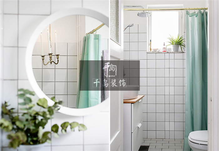 浴室之中采用了為常見的鋪磚處理,白色的格紋磚是北歐風(fēng)家居常見的元素之一。在大空間上保持北歐風(fēng)格占據(jù)主體地位,但細(xì)節(jié)之處卻利用金屬元素修飾。依舊是空間上相互照應(yīng)的手法,浴簾橫桿豐富頂部空間,金屬壁燈裝點(diǎn)墻面留白,對(duì)比之間輕松打造出混搭家居。