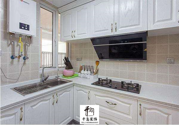 廚房,整體以白色為主,除了下面做了兩排柜子之外,還在墻上做了吊柜,這樣收納功能就很強(qiáng)大了。