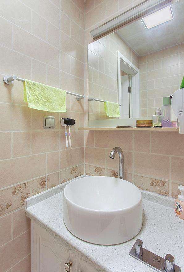 浴室,這種洗手盆不容易讓水濺出來(lái),特別實(shí)用,為了干濕分離還買了一個(gè)浴簾。
