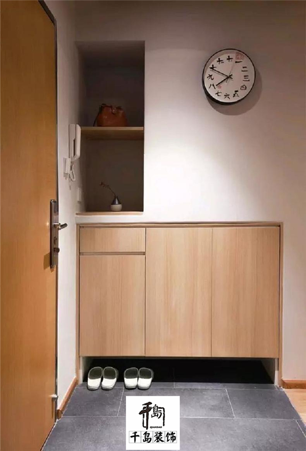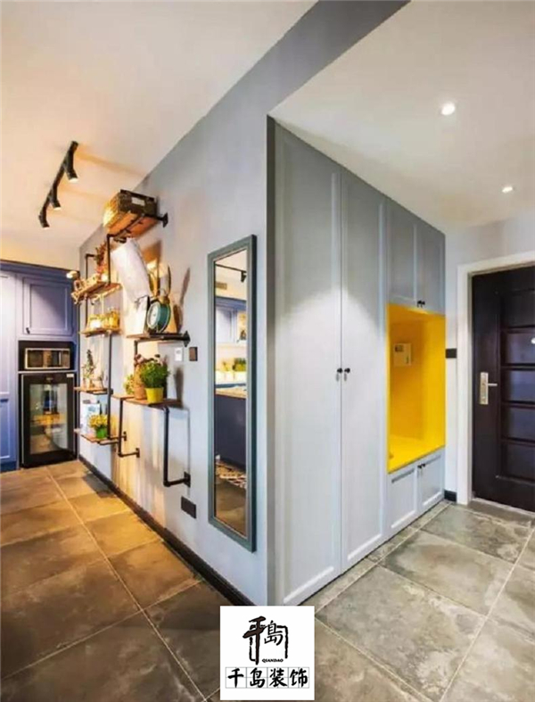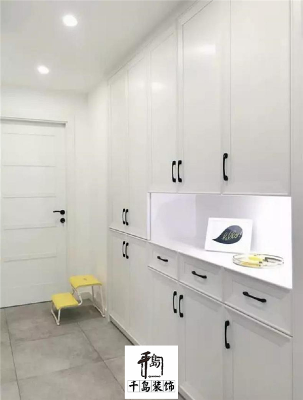 玄關的鞋柜如果直接擺個鞋柜,頂部空間就要浪費掉,對于鞋子較多的家庭而言似乎有點浪費了;那么這個時候如果通過硬裝的方式,把鞋柜與墻體嵌入安裝在一起的話,就顯得大氣舒適很多了。