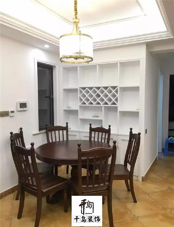 餐廳一般都是要餐邊柜或展示酒柜的,而靠墻做柜子的時候也不妨與墻面結(jié)合起來,裝成整潔大方的壁柜,然后整個餐廳都顯得高檔不少了,而且收納空間也得到了足夠的提升。