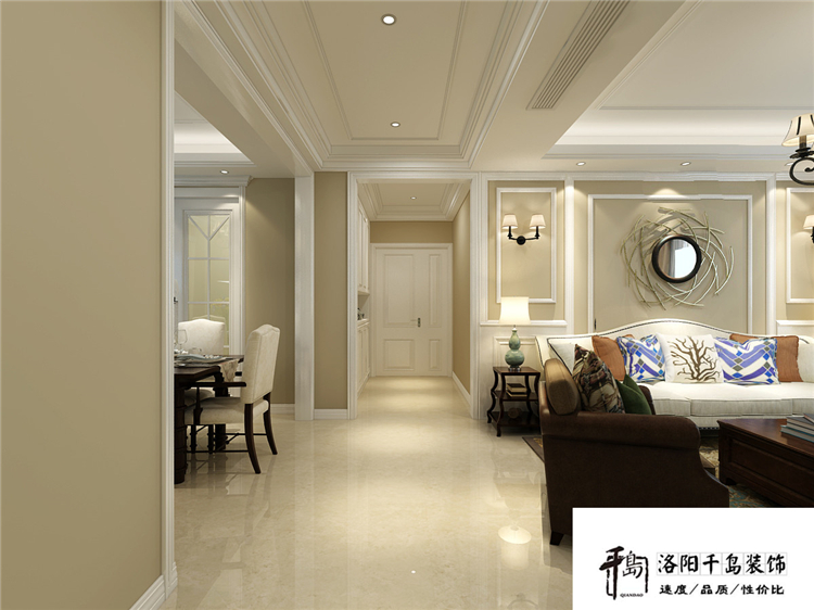 美式裝修,沒有太多造作的修飾與約束,貴氣加大氣而又不失自在與隨意。家具風格主要植根于歐洲文化,強調簡潔、明晰的線條和優(yōu)雅、得體有度的裝飾。在空間分配上,設計師盡量去關心每一個家庭成員的內心感受,從私密空間到開放式設計,設計師都花了很多心思。亞麻質感的沙發(fā),既回歸自然,又別有情調。感謝名門萬象客戶對我們洛陽千島裝飾的信任可支持!