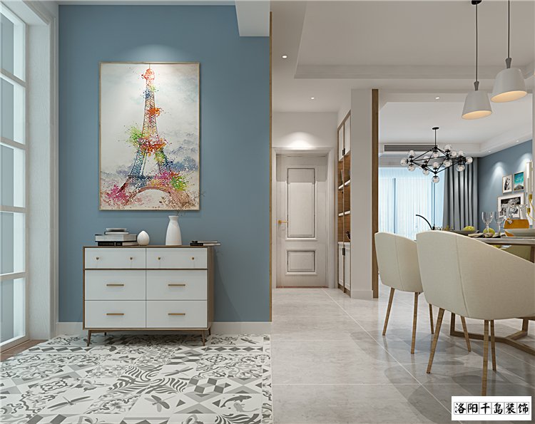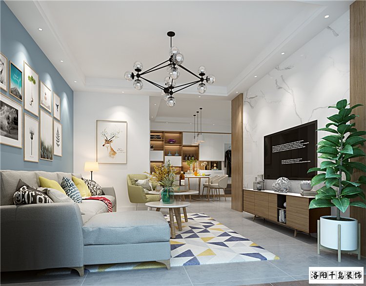 一對年輕的90后,喜歡色彩絢爛的空間,偏愛原木色的家具。鑒于小戶型空間面積有限,所以定義為北歐風。整體色彩搭配冷色系為主,局部搭配跳色,深色的地板,結合灰色墻面,局部藍色,配套原木色加白色的家具。當然,一面原木色飾面板結合雅士白石材的電視背景墻,更是畫龍點情之比,低調(diào)而不失高雅。