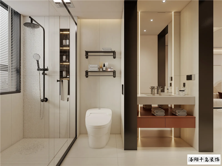 衛(wèi)生間采用干濕分離的設計,懸空浴浴室柜,墻排下水,智能馬桶,獨立淋浴房!