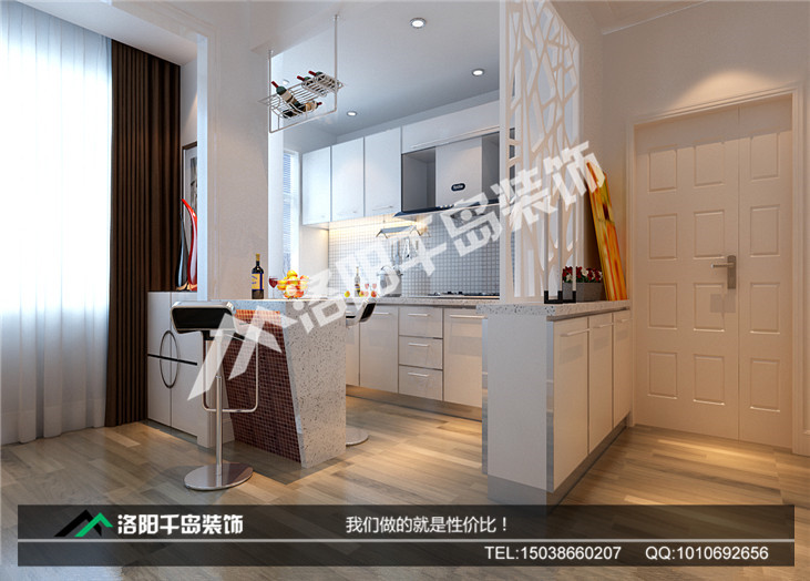 開放廚房加上精致典雅的小吧臺,對于這種小戶型裝修再適合不過啦!喜歡一種設(shè)計,能夠融入自己的想法,期待后期的施工效果!洛陽千島裝飾,每天進步一點點,每天學(xué)習(xí)一點點,我們爭做洛陽的裝飾公司!~