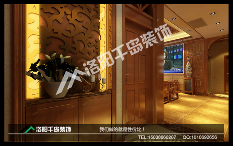我們可以看出整個客廳是傳統(tǒng)與現(xiàn)代居室風(fēng)格的碰撞,我們洛陽千島裝飾的設(shè)計師以現(xiàn)代的裝飾手法和家具,結(jié)合古典中式的裝飾元素,來呈現(xiàn)亦古亦今的空間氛圍。其實(shí)美在于一種境界,作為洛陽裝修公司的一名設(shè)計師,我很榮幸,能將的設(shè)計呈現(xiàn)給大家!