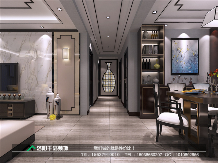 設(shè)計師在本套新中式裝修風(fēng)格上,通過線條來串聯(lián)起古今的詩情畫意,將園林的曲徑通幽的精髓,揉入空間,在沉穩(wěn)內(nèi)斂中表現(xiàn)出現(xiàn)代活潑理念,以減輕古韻里的厚重感。激烈的對比和鮮明的表達,空間呈現(xiàn)出極強的趣味感。
