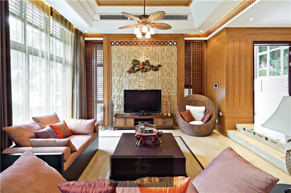 客廳作為會客區(qū),是整間屋子的門面,所以我們挖空心思地想要把家中美的一面呈現(xiàn)在客廳。藤制家具線條流暢柔和、造型華貴舒適,頗有豪邁典雅的氣派,使藤制家具既不失純樸自然、清新爽快的特色,又充滿了現(xiàn)代氣息和時尚的特色。