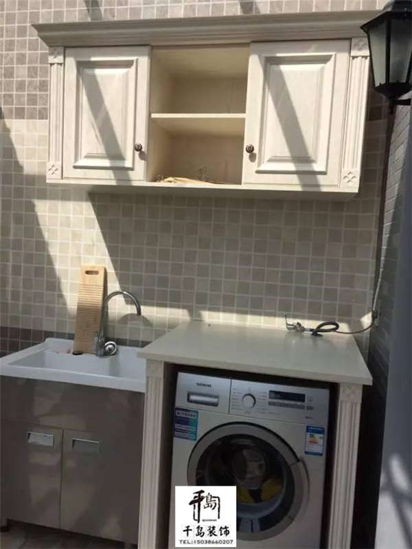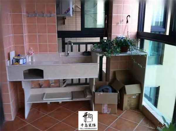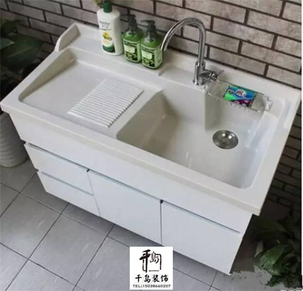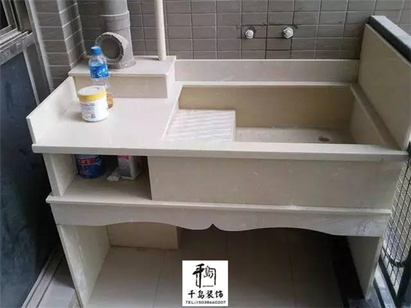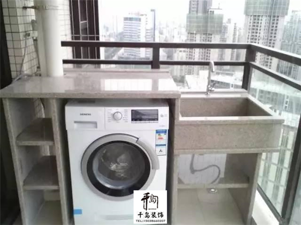 使用花崗巖制作的臺(tái)面,還可以把洗衣機(jī)放在里面,這樣以后在陽(yáng)臺(tái)上面洗衣服很方便。