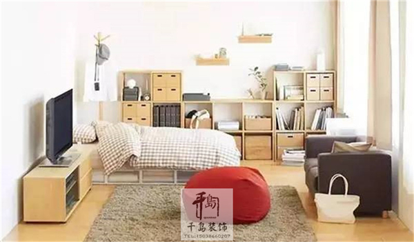 白色和原木色作為房間的基調(diào),并用統(tǒng)一規(guī)格的收納柜收納物品,空間呈現(xiàn)出一種干凈、素潔、寬敞的感覺。