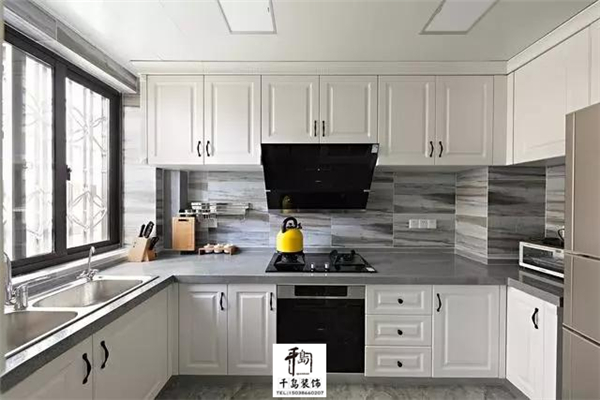 白色的廚房給人帶來清新自然的做飯環(huán)境,墻上的瓷磚豐富了廚房的色調(diào)讓廚房更加自然。