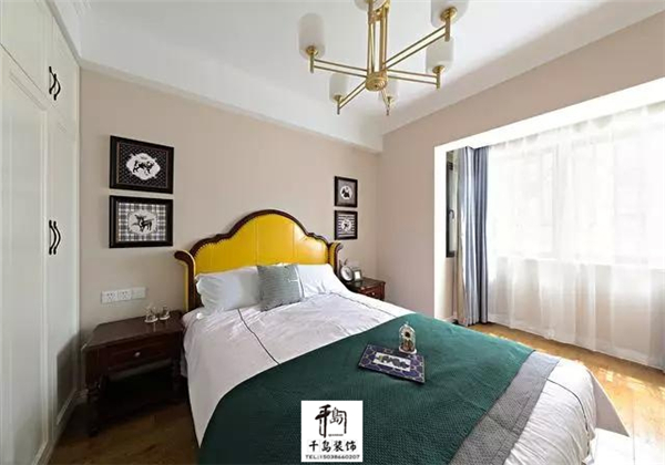 素雅的臥室,黃色的床頭點(diǎn)亮整個睡眠空間的色調(diào),陽光透過薄紗般的窗簾照射在潔白的床上是那么的溫暖舒適。