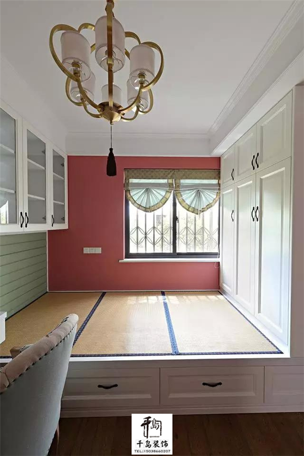 鏈接柜子一體的榻榻米增強(qiáng)的足夠的儲物空間??梢宰鳛闀縼硎褂茫瑫r還可以作為客房使用。