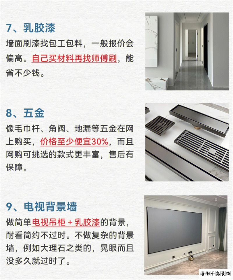 新房裝修有哪些環(huán)節(jié)是可以省錢的?針對這個問題,網(wǎng)上的說法可謂是眾說紛紜,不過也不能全信,該省錢的地方省,改花錢的地方話,我總結了八個可以省錢的地方,包括了所有的裝修項目,你根據(jù)自身的預算和裝修需求照著做,能省一點算一點。
