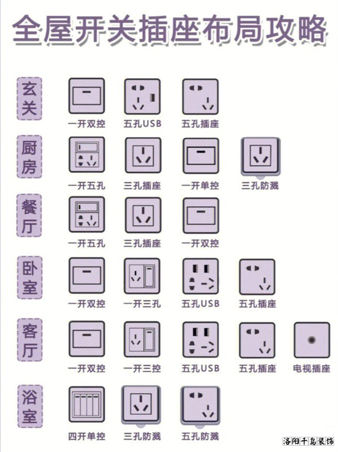 新房裝修開關(guān)插座怎么留?這已經(jīng)是一個被無數(shù)人都說過的話題,對于常規(guī)的開關(guān)插座布局方法,詳細大家都已經(jīng)很清楚了,今天洛陽千島裝飾的小編就著重給大家講一下,開關(guān)插座預留最容易忽略的10個關(guān)鍵點,遺漏這10個開關(guān)插座,后期沒法補救,大大影響您后期入住的舒適度和實用性。