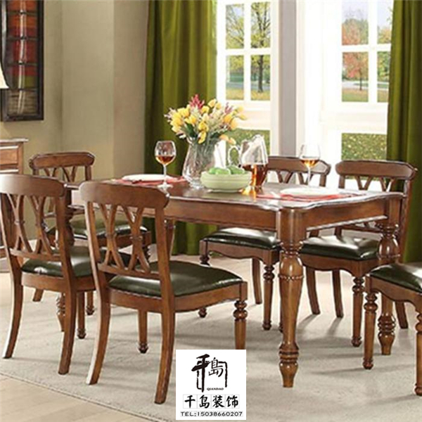 餐廳是具浪漫情調(diào)的地方,圍坐在浪漫的美式餐廳中,一頓浪漫的燭光晚餐,似乎自己就是電視劇里的主人公,餐桌的選擇非常的重要,不僅要美麗浪漫,也要耐用健康,美式鄉(xiāng)村風(fēng)格的實(shí)木餐桌,精選的優(yōu)質(zhì)實(shí)木材,精心打磨成圓潤(rùn)精致的餐桌和餐椅,椅子上優(yōu)質(zhì)的油蠟皮,坐感柔軟舒適,造型沉穩(wěn)大方,彌漫著濃濃的美式風(fēng)情。