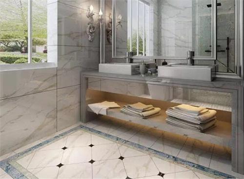 浴室用馬賽克裝飾一整塊墻壁,可能是一種比較奢華的感受。當然,馬賽克只是一種裝飾的技巧,我們可以在電視機的背景墻中增添一橫條,類似于銀鏡的裝修,能起到很好的裝飾效果。