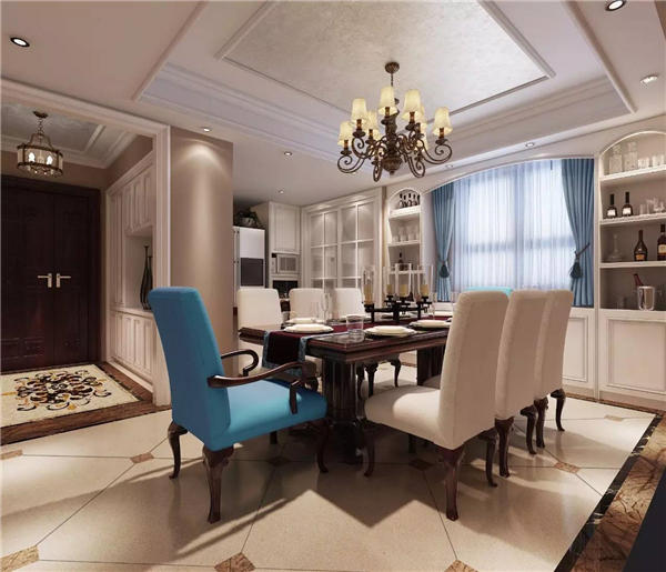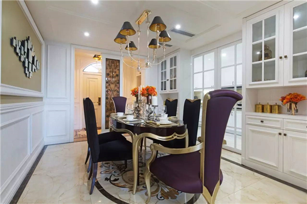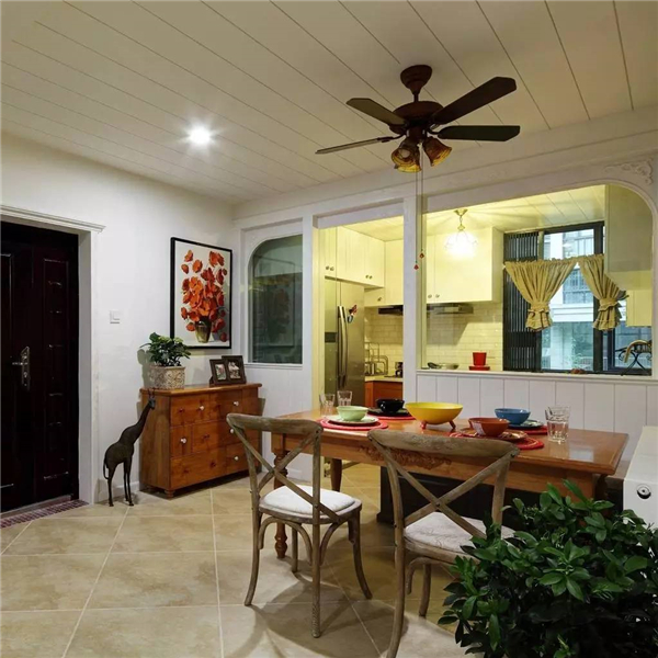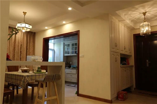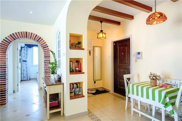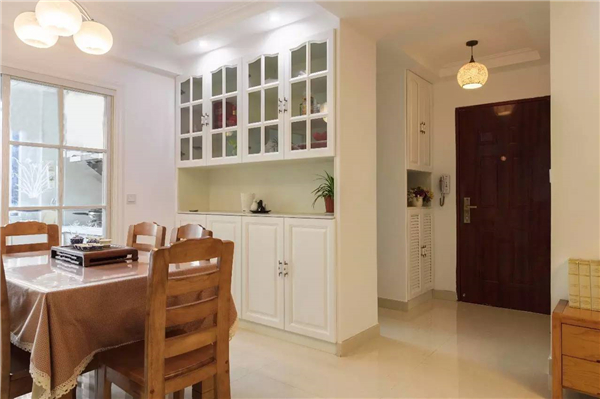 如果餐廳比較長(zhǎng)的,可以裝一道屏風(fēng),避免入戶門直對(duì)餐廳;同時(shí)建議可以采用鞋柜隔斷,讓沒(méi)玄關(guān)的戶型隔出一個(gè)玄關(guān)空間的同時(shí)又能增加收納功能。