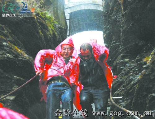 據(jù)劉先生介紹,當(dāng)天在下雨,上午他們一行8人坐索道到了山上后,就分成了兩組。劉先生等6人從剛修通不久的木棧道去蘑菇石景區(qū)游覽,而同行的賴先生則與另一伙伴去攀登金頂。